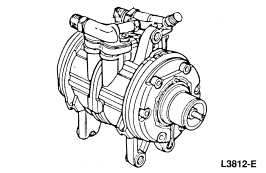 A magnetic clutch is used to drive the compressor shaft. When voltage is applied to the clutch field coil, the clutch plate and hub assembly (which is solidly coupled to the compressor shaft) is drawn by magnetic force toward the pulley which rotates freely on the compressor front head casting. The magnetic force locks the clutch plate and hub assembly and the pulley together as one unit. The compressor shaft then turns with the pulley. When voltage is removed from the clutch field coil, a rubber bushing in the clutch plate and hub assembly moves the clutch plate away from the pulley and the clutch plate and hub assembly and the compressor shaft cease to rotate.