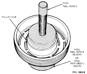 the bore until seated with Pulley Bearing Replacer T80L-19703-C.