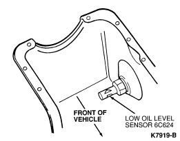 This system consists of a float-type sensor mounted to the side of the engine oil pan, an electronic control module and an instrument panel warning indicator.