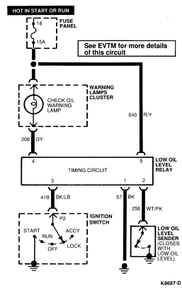 With oil at FULL mark on dipstick and the engine oil warm to ensure that the oil drains properly from the oil sensor, turn ignition switch to the RUN position and start engine. Warning indicator should come on briefly in START for bulb prove-out, then go out. Turn engine off. Drain 1.9 l (2 qt) of oil from engine. Wait about five minutes, then restart engine. Warning indicator should come on and stay on.