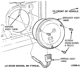Connect speaker lead, position speaker to the door side panel and install the retaining screws.