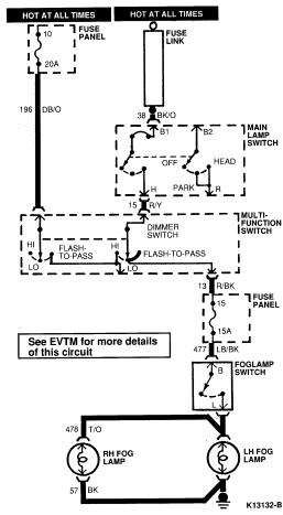 The fog lamp system consists of the two fog lamps, a switch assembly and