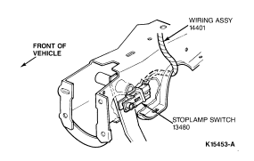 NOTE: Stoplamp switch wire harness must have sufficient length to travel with switch during full stroke of pedal. If wire length is insufficient, reroute harness or service as required.
