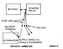 When heavy current flows, such as when a booster battery is connected incorrectly or when a short to ground occurs in the wiring harness, the fuse link burns out and protects the alternator or wiring.