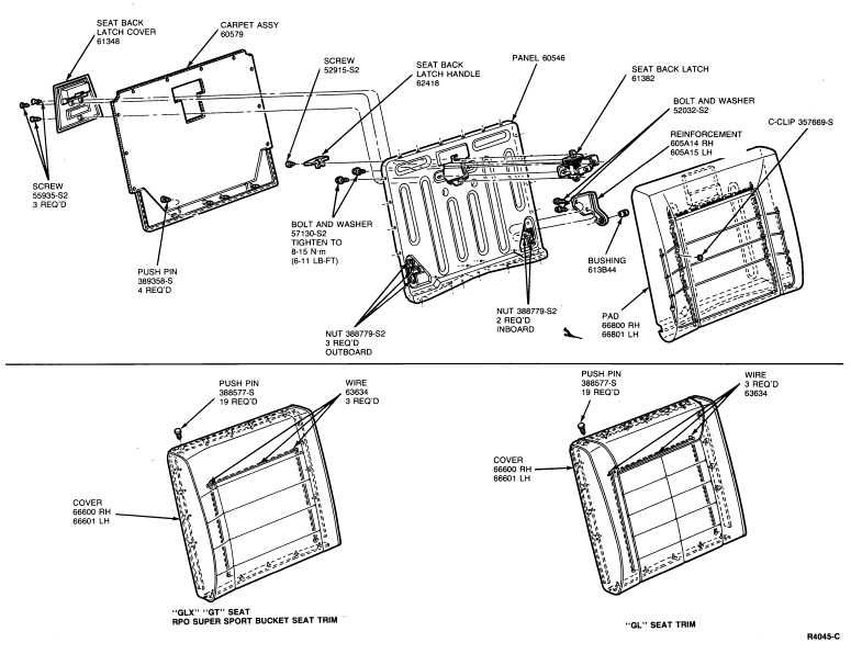 Install panel and carpet assemblies to seat back using necessary push pins.