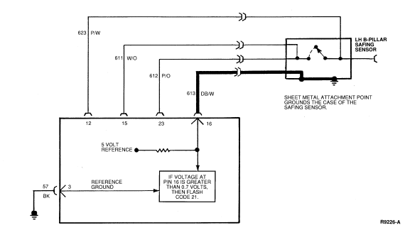 the diagnostic monitor connector to the safing sensor.