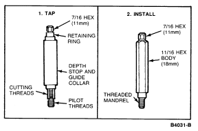- Install taperset into tapped hole. Tighten 18mm (11/16 inch) hex to 68 Nm