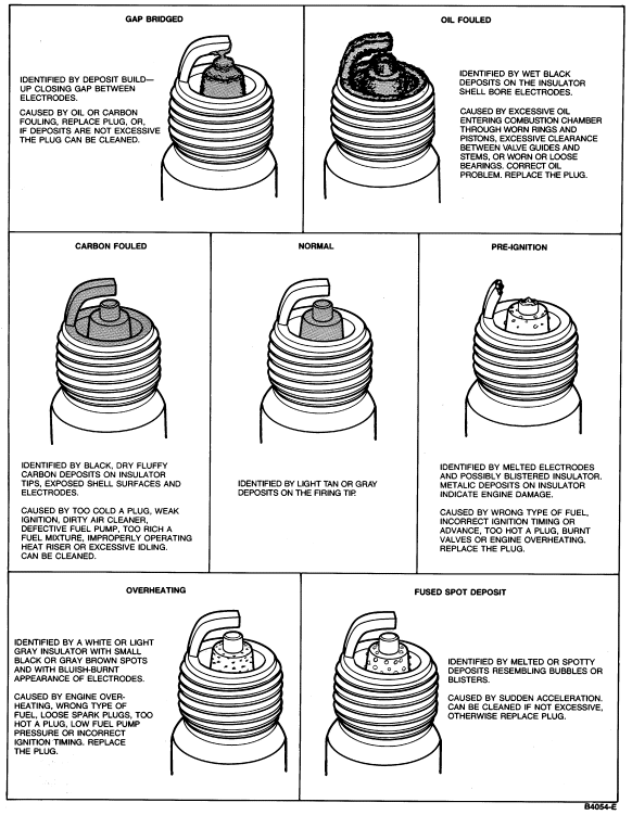 Refer to the Spark Plug Inspection Chart to determine the condition of