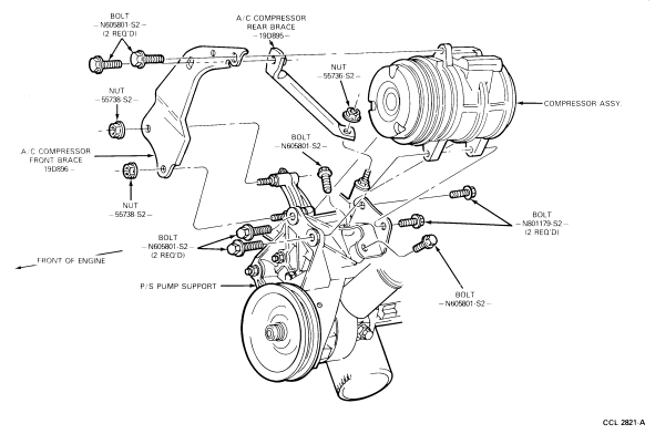 - Remove compressor/clutch assembly and rear support from vehicle as unit.