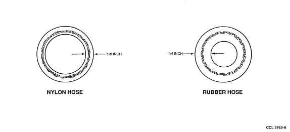 has a wall thickness of 1/4 inch and nylon lined hose has a wall thickness of