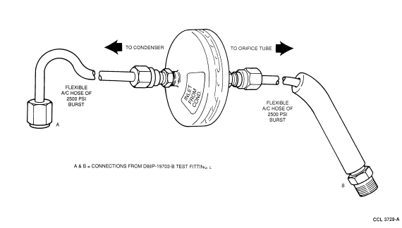 be made using A/C Test Fitting Set D88P-19703-B or equivalent, and flexible