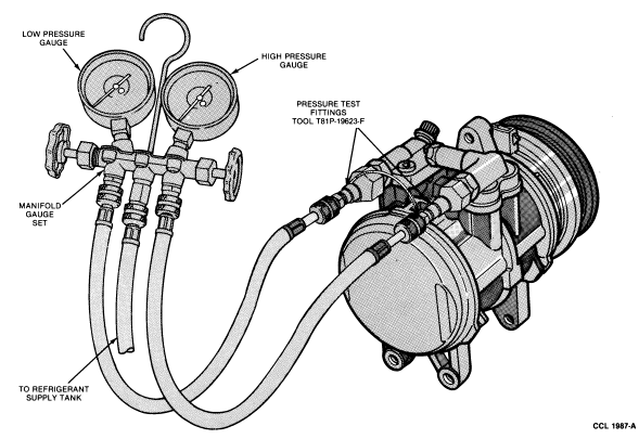 remove the manifolds from the compressor and install Pressure Test Plates