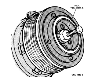 Plate Replacer T80L-19703-F to press the hub on the compressor shaft if