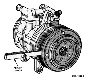 of the shim pack between the clutch hub and the end of the compressor shaft.
