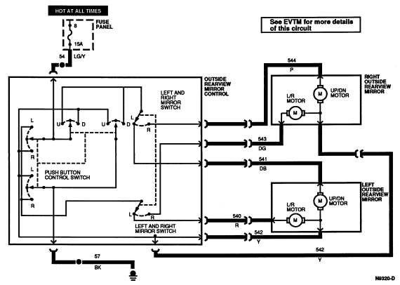 | 4 | 540 (R) | LH Mirror Left/Right Motor (B+ Right) |
