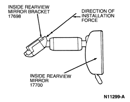 NOTE: These breakaway mounts are designed to detach from the inside rear view mirror bracket (17698) during air bag deployment. Excessive force and/or excessive up, down, side-to-side adjustment can cause inside rear view mirror (17700) to detach from windshield glass (03100) .