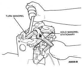 To do this, coat the seat with Prussian Blue and set the valve in place. Rotate the valve with light pressure. If the Prussian Blue is transferred to the center of the valve face, the contact is satisfactory. If the Prussian Blue is transferred to the top edge of the valve face, lower the valve seat. If the Prussian Blue is transferred to the bottom edge of the valve face, raise the valve seat.