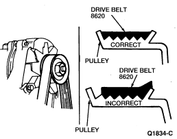 Conditions requiring drive belt replacement are excessive wear, rib chunk-out, severe glazing, frayed cords, etc. Replace any drive belt (8620) exhibiting one of these conditions.