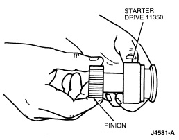 - Turn the pinion by hand and hold the overrunning clutch. Replace the starter drive (11350)