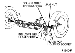 NOTE: Whenever the jam nuts are loosened for toe adjustment, the nut and front wheel spindle connecting rod or end threads must be cleaned and lubricated and the jam nut tightened to 48-68 Nm (35-50 lb-ft).