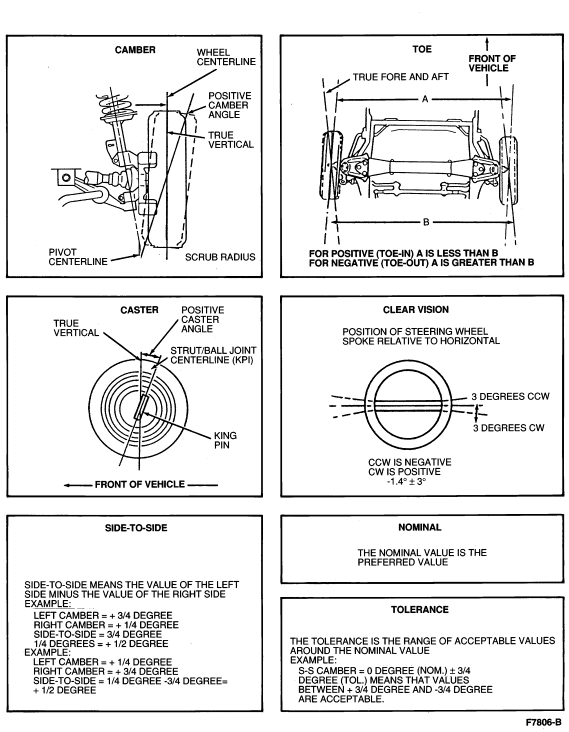 Refer to Specifications for front-wheel alignment specifications.