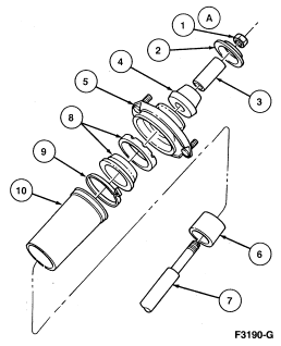NOTE: Front shock absorber upper mounting brackets (18A161) consist of an assembly of several parts to be assembled on the front shock absorber (18124) rod and body mounting bracket.
