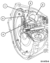 The torque converter (7902) for the transmission is a four-element converter. It contains the standard three elements (impeller, turbine and stator) for transmission of power and multiplication of torque, plus a torque converter clutch for increased fuel economy in second, third and fourth gears.