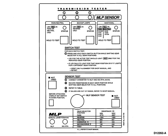 - Tester Select Switch to the MLP SENSOR TEST position.