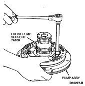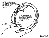 NOTE: Coat intermediate clutch piston outer seal and intermediate clutch piston inner seal and pump body sealing area with petroleum jelly.