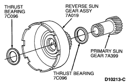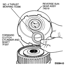 NOTE: The forward clutch sun gear and reverse sun gear assembly is assembled as part of the transmission assembly procedure.