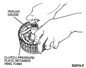 Clutch pressure plate should be held downward as the clearance is checked.