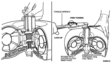 converter clutch holding tool held stationary, turn the torque wrench