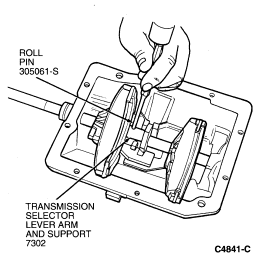 CAUTION: Ensure the roll pin is installed slightly below the transmission