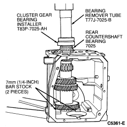 NOTE: Support the countershaft cluster gear using two pieces of 7mm (1/4-inch) bar stock.
