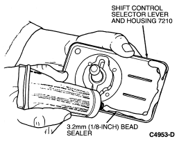 Apply a 3.2mm (1/8 inch) bead of Silicone Rubber D6AZ-19562-AA or BA