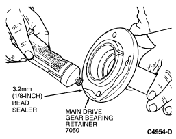 CAUTION: The sealer must not cover the notch in the main drive gear bearing retainer