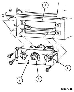 The heater control (18549) is located in the instrument panel (04320) at the right of the steering column. The heater control panel has three knobs (18519) .