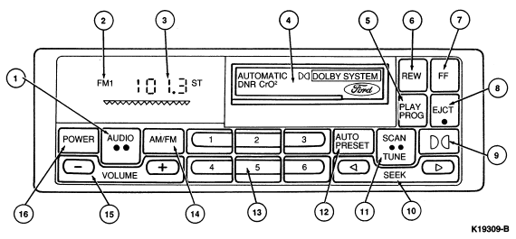 | 15 | — | Audio Button (Bass, Treble, Speaker Balance and Speaker Fade Selection) |