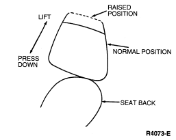The front seat back head restraint can be positioned anywhere from a normal position to a raised position of approximately 25mm (1 inch).