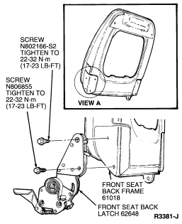 The front seat back latch (62648) is modular so it does not require customer or dealer adjustments or maintenance. Do not lubricate the front seat back latch . Lubricating the front seat back latch will adversely affect free rotation of the locking cams.