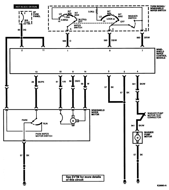 | 2 | 28 (BK/PK) | Windshield Wiper Motor Park Switch |
