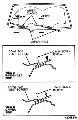 Install the arm and blade assemblies on the pivot shafts to Dimension X.