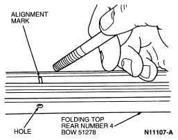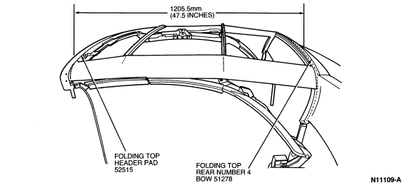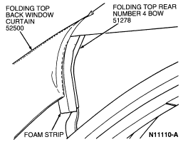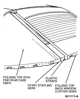 NOTE: The folding top stay pad rear case (52875) generally will not be removed to replace the back window glass . If it is removed, it will be stapled before the back window glass is installed.