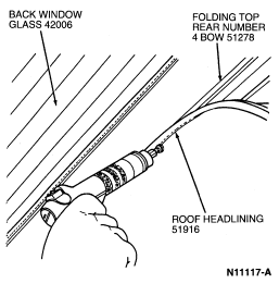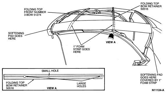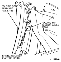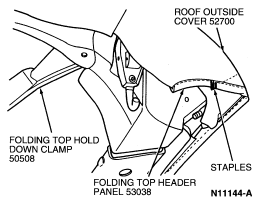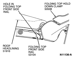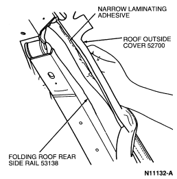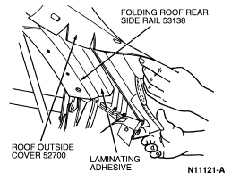 NOTE: All glue must be removed from folding roof rear side rail .