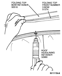 NOTE: Plastic roof heading retaining pins must be replaced if they are removed.