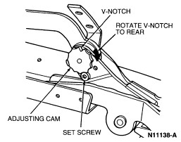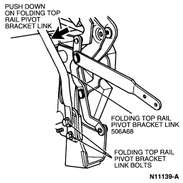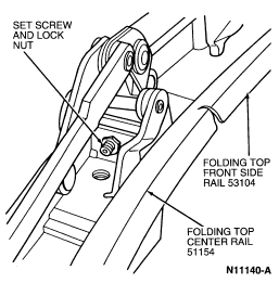 Stand behind the vehicle and visually sight across the folding top rear number 4 bow (51278) . The height of the folding top rear number 4 bow should be even side-to-side. If not even, adjust as follows: