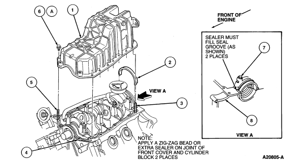 NOTE: When using silicone rubber (RTV) sealer, assembly must occur within 15 minutes after sealer application. After this time, the sealer may start to set-up, and its sealing effectiveness may be reduced.