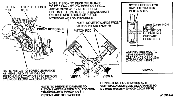 NOTE: Install pistons in the same cylinders from which they were removed or to which they were fitted. If a connecting rod is transposed from one cylinder block (6010) or cylinder to another, new bearings should be fitted and connecting rod should be numbered to correspond with new cylinder number.