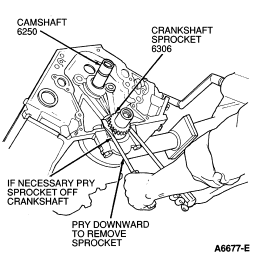- Remove distributor drive gear (6255). Remove camshaft sprocket (6256)