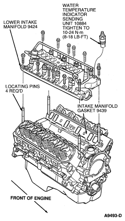NOTE: On Mustang only, the cover plate must be removed to access the upper intake manifold retainer bolts.